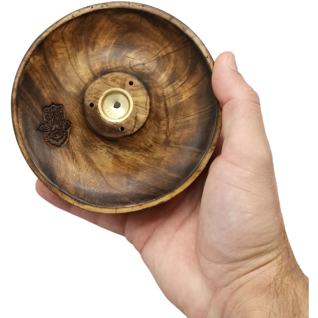 Räucherstäbchen und Kegelbrennerscheibe Mangoholz Hamsa 12,5cm