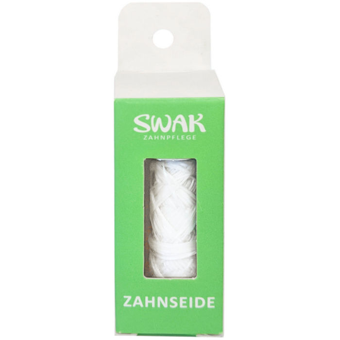 Swak Zahnseide im Glasflacon. Mit 30m Cruelty-Free* Seide. Komfortabel, plastikfrei, ökologisch und schnell in der Anwendung.